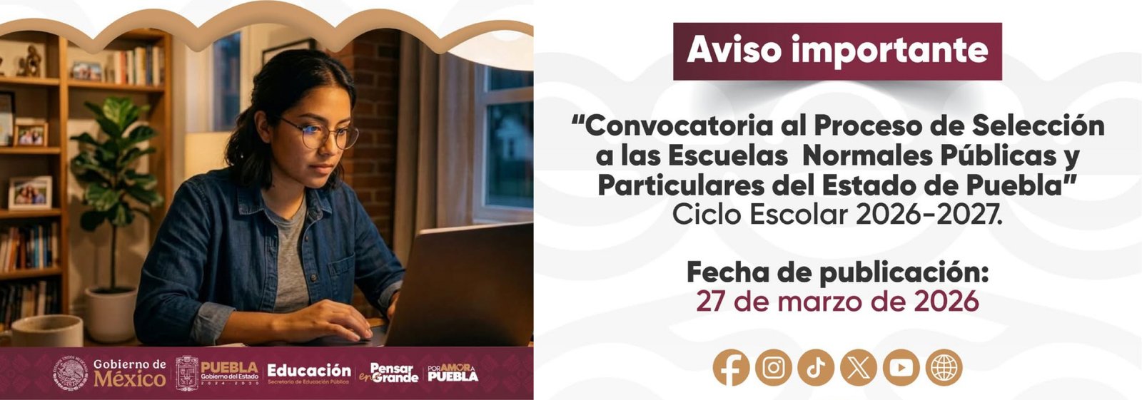 A todos, quienes forman la Comunidad Normalista de Puebla, se les expresa la más cordial bienvenida a esta nuestra Página Web, que constituye, no solo el medio oficial de comunicación institucional, sino el espacio ideal para compartir nuestro pensamiento y dar a conocer los logros que con el esfuerzo de todos vamos alcanzando; un mecanismo extraordinario de acercamiento y un elemento maravilloso para fomentar nuestra identidad.